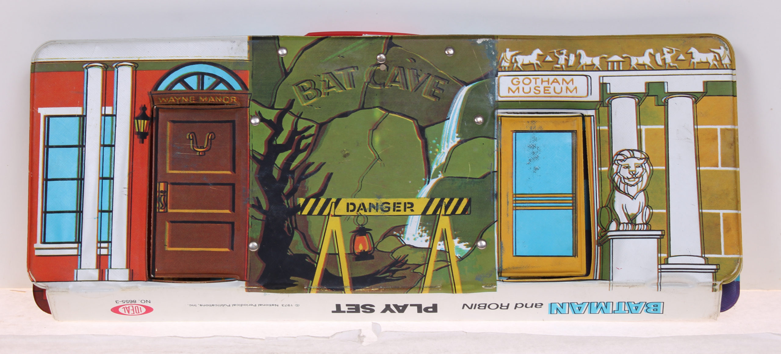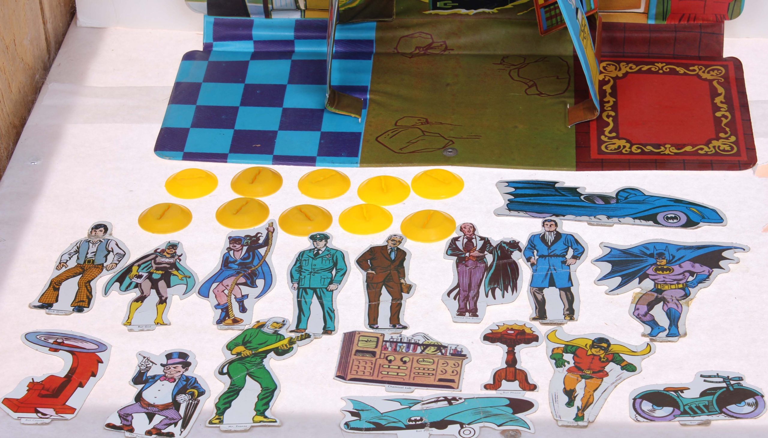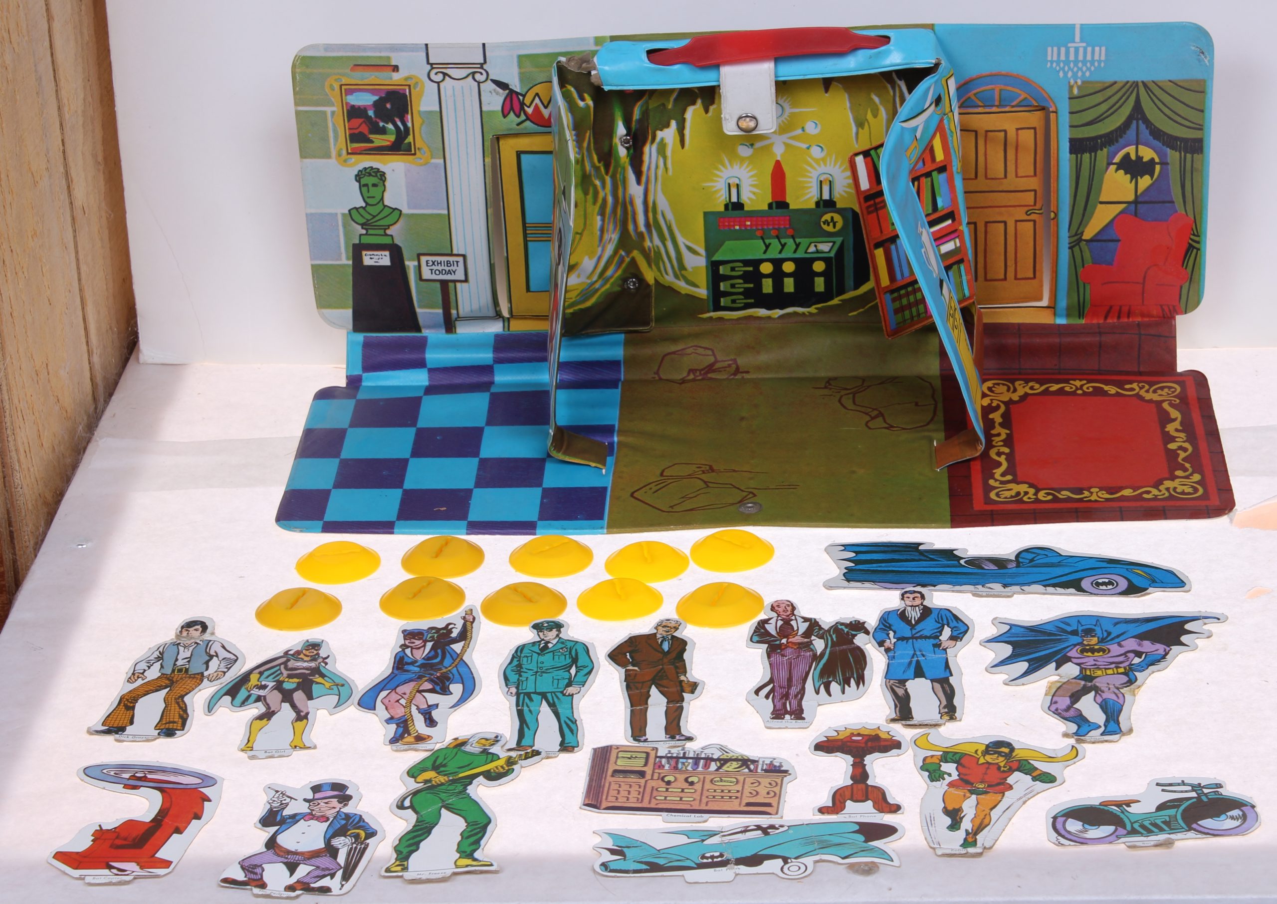 Batman and Robin Playset by Ideal 1973 Mego Vintage Era Toys Loose Set in Good Shape including 10 stands and 17 figures