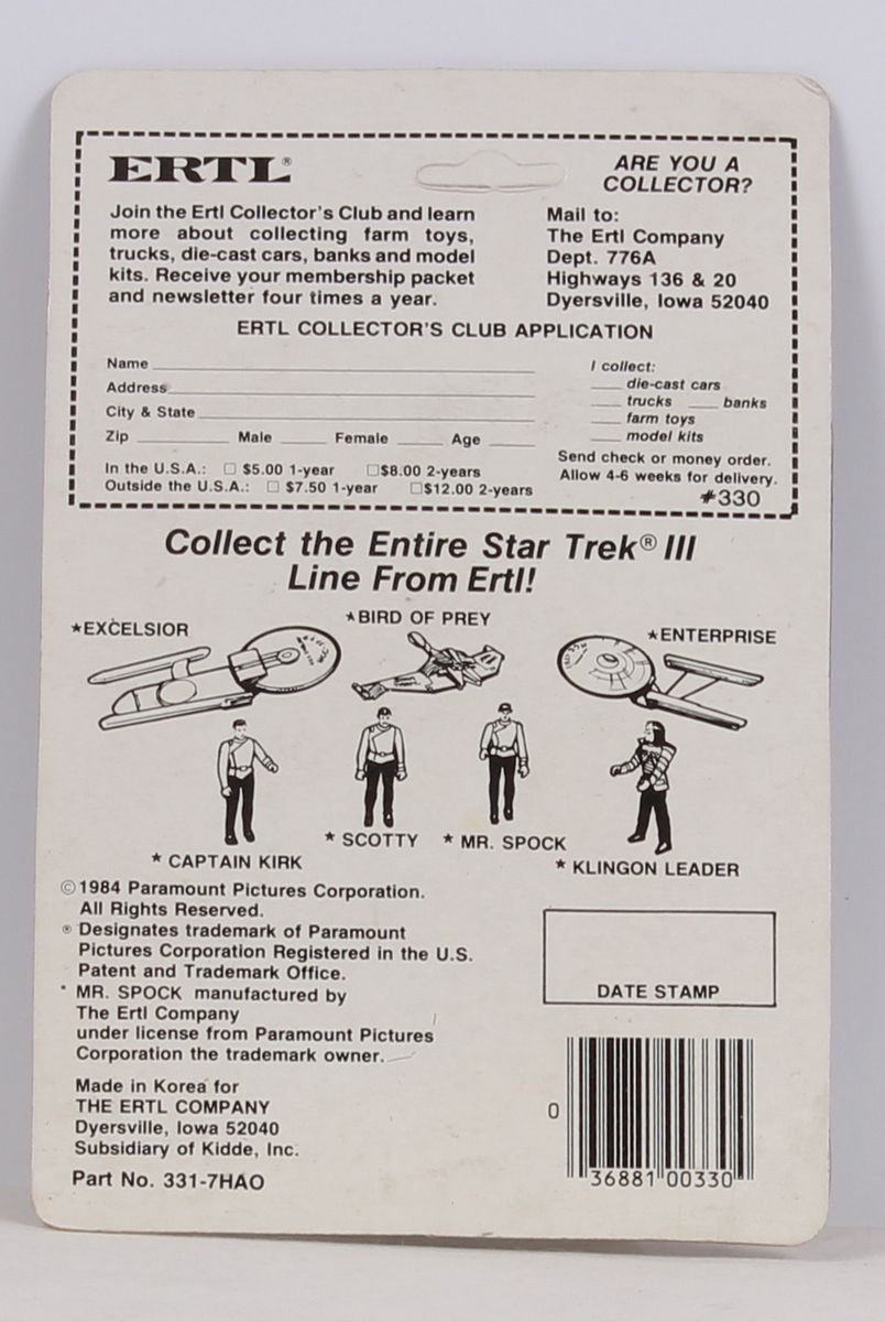 Mr Spock Star Trek Star Trek III MOC C-9+ Unpunched