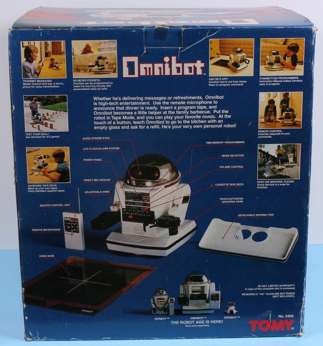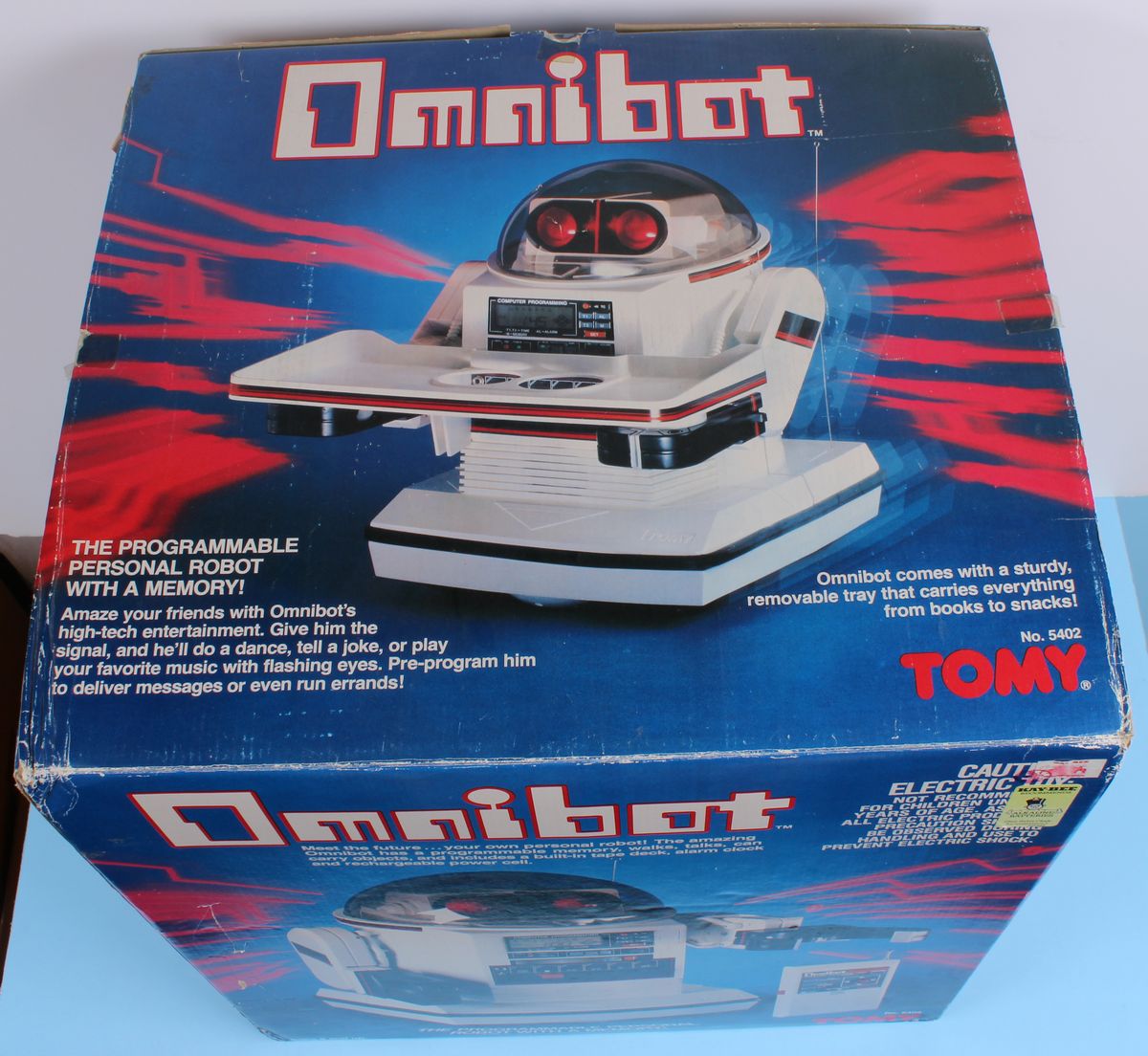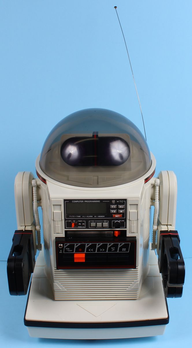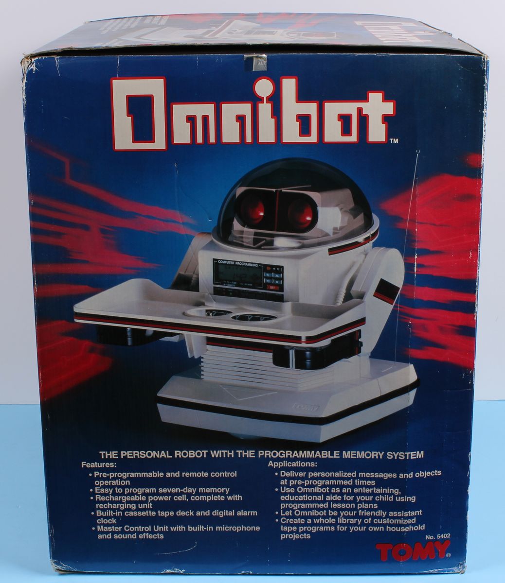 Omnibot Robots Tomy MIB C-9 Rare 1980s Toy Appears to be in Near Mint condition. Still in Shipping Case. Missing Charger. Robot’s electronics have not been tested.