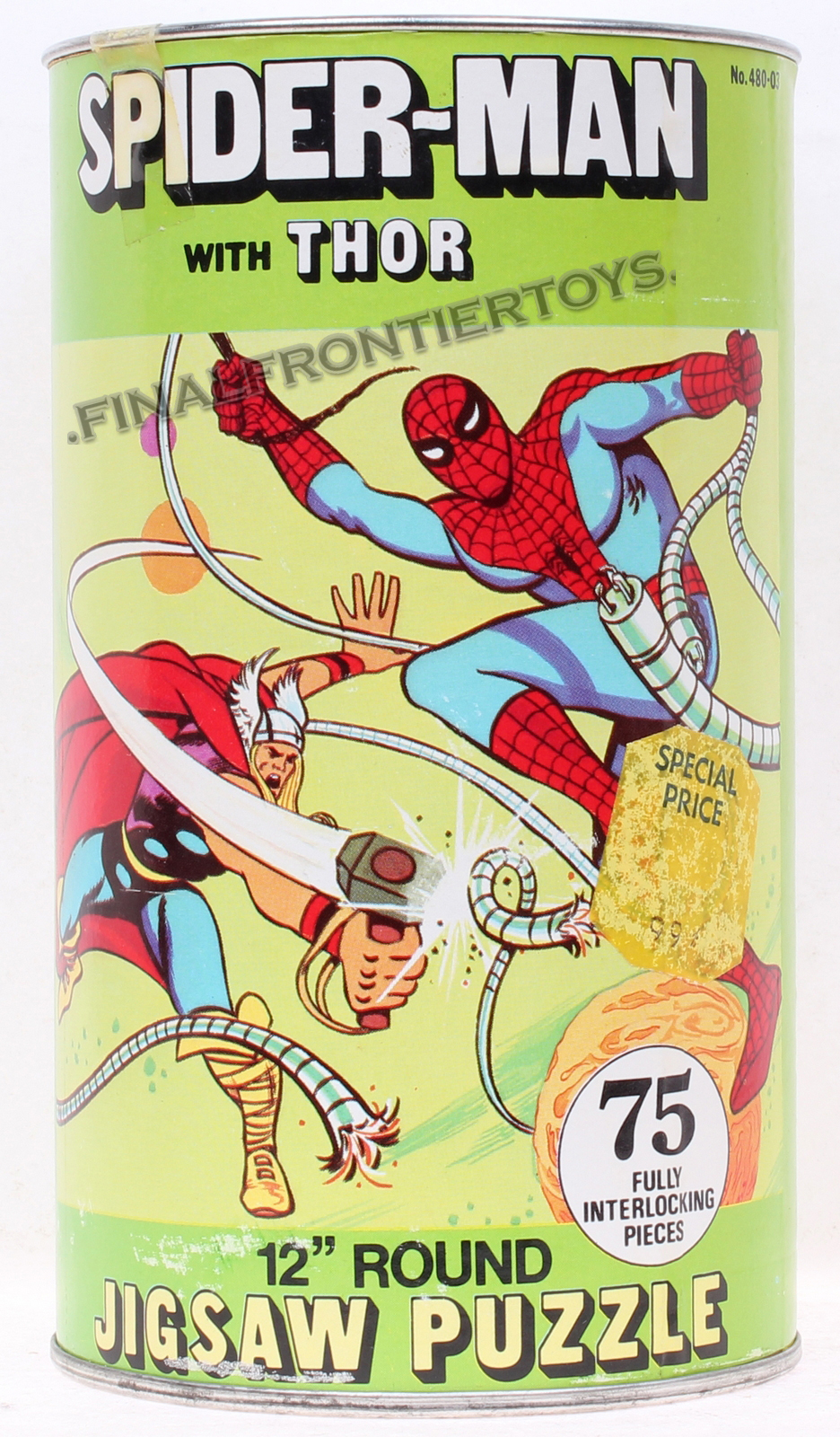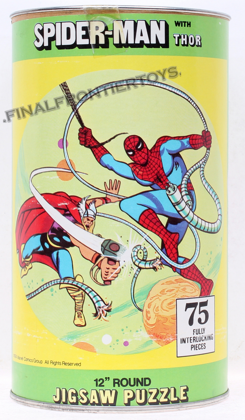 Spiderman 12″ Inch Round Puzzle with Thor Mego Vintage Era Toys MISB C-9.5- 1974 release by HG Toys