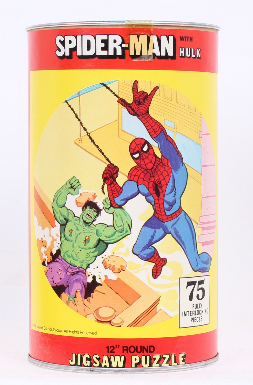 Spiderman 12″ Inch Round Puzzle with Hulk Mego Vintage Era Toys MISB C-9.5- 1974 release by HG Toys